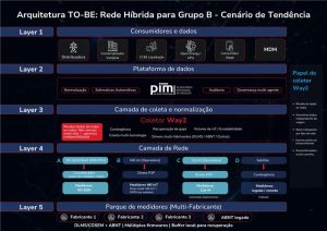 • Grupo B (integração de campo): novos drivers de medidores inteligentes (medidores e NIC); leituras PUSH e eventos (por exemplo last gasp); atualização de firmware; monitoramento de perdas;